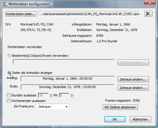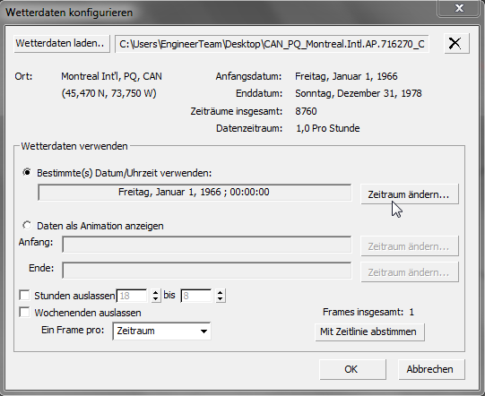 Gruppe "Position" die Option "Wetterdatendatei", und klicken Sie anschließend auf "Einrichten".