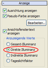 Gruppe "Anzuzeigende Werte" und wählen Sie "Direkte Illuminanz".