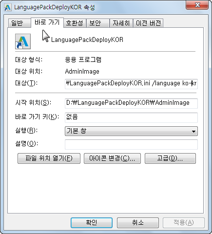 EXE_PATH=%platform%₩zh-CN₩inventor₩inventorlp.msi - 언어 이름(예: zh-CN) 및 경로가 1단계에서 입력한 내용과 같아야 합니다.