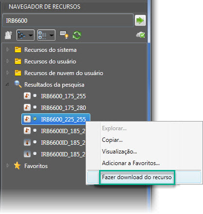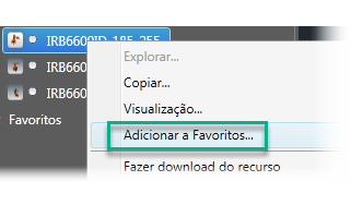 - Clique com o botão direito do mouse no recurso no Navegador de recursos e selecione Adicionar a Favoritos. A seguir, você pode navegar até a pasta Favoritos e conferir os recursos baixados a qualquer momento.
