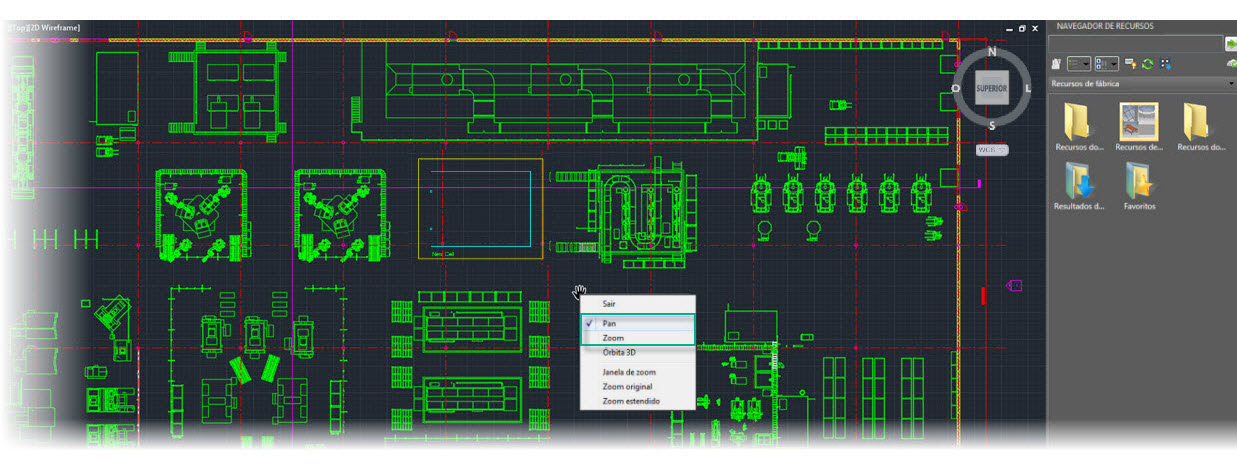 - Investigue o desenho usando as ferramentas Panorâmica e Zoom disponíveis no menu de contexto.