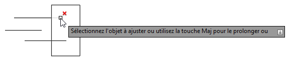 Lors de votre travail sur vos conceptions, vous aurez probablement à ajuster et prolonger des géométries relativement proches les unes des autres. Au lieu d’utiliser les commandes AJUSTER et PROLONGER séparément, vous pouvez commencer avec l’une et alterner entre l’ajustement et le prolongement des objets sélectionnés.
