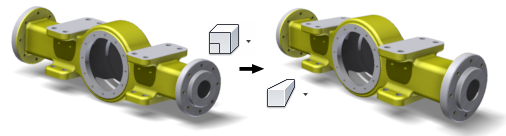 Utilice el modo Cámara en perspectiva para tener una idea del aspecto que tendrán las piezas y los ensamblajes al ojo humano durante el proceso de fabricación. También puede utilizar el modo Cámara en perspectiva para determinar la posición relativa de los objetos de igual tamaño en un ensamblaje, sin tener que rotarlo.