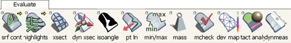 “Iso-Angle”工具提供比斑马线着色显示更为精确的评估结果。它将显示曲面法线与某个无穷远“光源方向”之间的零角度线。