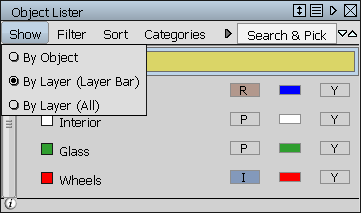 除使用层栏外,还可使用“Windows”“Object Lister”。默认设置是“Show by Layer”(按层显示),这会列出每一层,可以使用鼠标右键访问其子菜单。