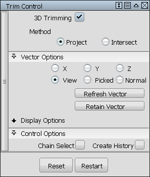 为避免两阶段的过程,“Trim”工具中的“3D Trimming”选项支持使用与 ICEM 中相似的工作流。通过该选项,可以在一次操作中选择曲面、曲线和要保留的区域。