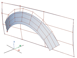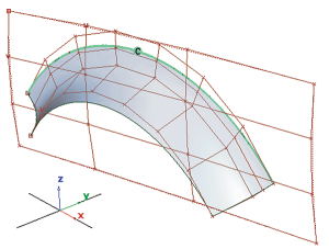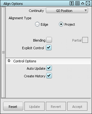 使用“Project”选项可以将自然边与曲面内部对齐。移动 CV 的方式由所选矢量指定。在主曲面上沿对齐的边会创建一条面上曲线。