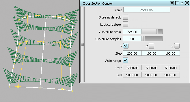 可以将预设的 X、Y 和 Z 断面应用到选定几何体,还可以通过双击打开选项窗口对断面进行修改。单击曲率复选框会沿断面显示曲率图,该图会在建模的过程中自动更新。