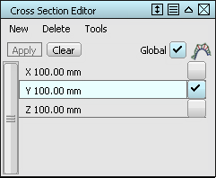 使用“New”可以创建其他断面组,使用“Clear”可以控制断面的显示。启用“Global”可以将所选断面组应用到所有可见几何体。