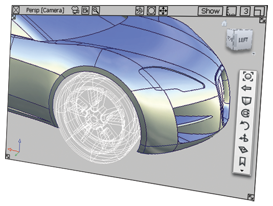 不像 ICEM 屏幕的右侧是“Special View Block”,在 Alias 中是 ViewCube 和导航栏,使用 Shift + Alt + 鼠标键 (Windows) 或 Shift + Command + 鼠标键 (Mac) 按钮进行查看时,它们会出现在透视窗口的右上角。