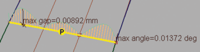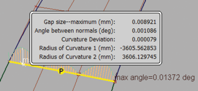 “Surface Continuity”工具检查两个曲面之间的边界,并创建一个标注以显示 G0、G1 和 G2 的连续性精确程度。标注是一种用于检查和显示信息的特殊图元,有自己的“Pick”和“Delete”工具(在“Locators”工具箱中可以找到其他标注。)