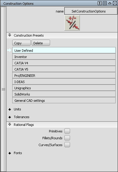 使用“Preferences”“Construction Options”,您可以从预设列表中选择构建选项或自定义构建单位和公差。
