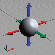 在透视窗口中,鼠标键与世界空间坐标 (X,Y,Z) 相对应,支持在所有坐标轴方向自由移动。移动时,鼠标左键将移动约束在 X 轴,鼠标中键将移动约束在 Y 轴,鼠标右键将移动约束在 Z 轴。旋转时,使用各按钮可分别绕各个对应坐标轴旋转。使用任意的鼠标键,“Scale”工具都能均匀地缩放对象。