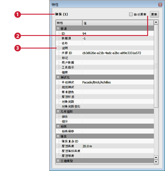— 显示选定内容的所有可用特性,以及为这些特性指定的任何值。灰显的特性已被锁定,不能对其进行更改。若要更改解除锁定的属性,请单击该特性的“