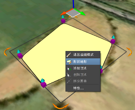 在覆盖区域上单击鼠标右键以打开关联菜单,然后选择“形状地形”。