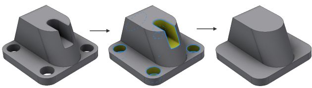删除详细信息 通过删除识别的圆角、倒角或自定义选择的面,来简化模型。。