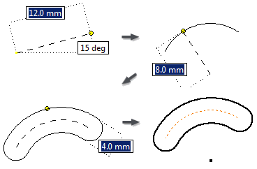 “由三点圆弧确定的槽”命令可以创建由三点中心圆弧和槽宽度定义的圆弧槽。