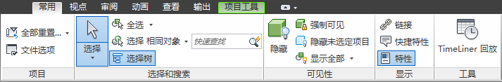 某些选项卡是与上下文有关的。执行某些命令时,将显示一个特别的上下文功能区选项卡,而非工具栏或对话框。例如,只要开始在“场景视图”中选择项目,那么先前隐藏的“项目工具”选项卡就会显示出来。未选中任何项目时,它会再次变为隐藏的。
