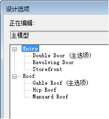 默认情况下,Revit 将新集命名为“选项集 1”,并在此集中创建一个主选项。