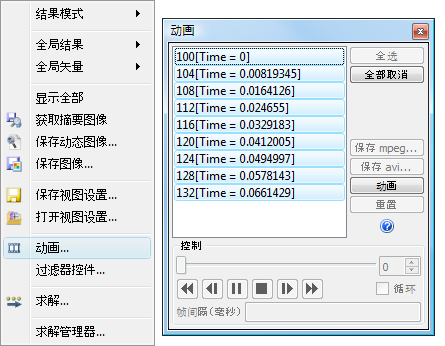 使用“动画”对话框可以针对保存的迭代或时间-步长制作动画。