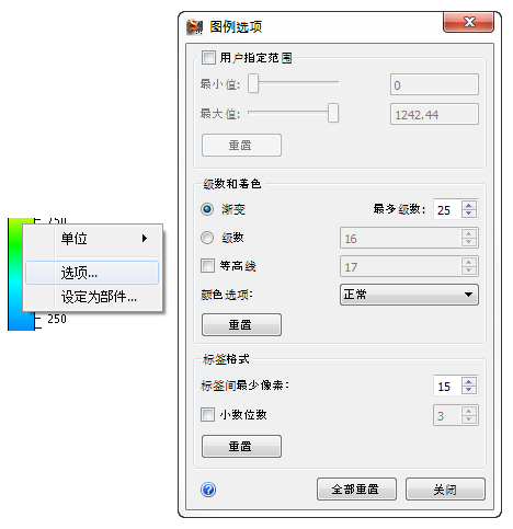 右键单击图例,并选择单位。