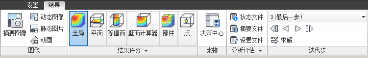 注意:当“全局结果”模式激活时,无法修改结果实体。但是,在任何“结果”任务中,若要控制整个模型的结果显示,右键单击模型外或者模型上的区域,然后从“全局结果”和“全局矢量”控件中选择适当的选项: