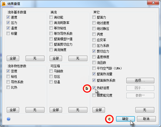 - b. 在“结果量值”对话框中,选中“热舒适度”。