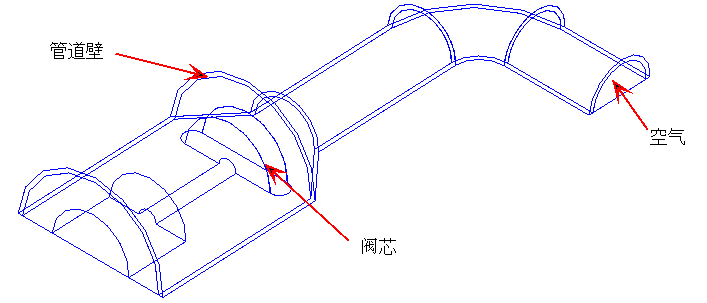 分析几何模型由管道外壁、阀芯和空气三部分构成: