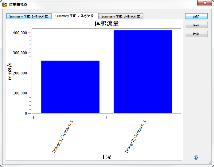 若要用图形表示数据,请分别选中两个平面对应的体积流量“绘图”复选框。单击绘图按钮: