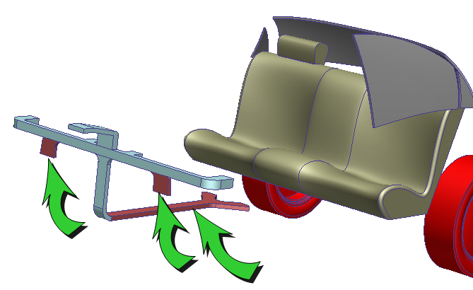 3. 在 CAD 模型中,启用允许空气流向前地板和后地板通风装置的特征。在控制台部件(或右侧驾驶配置的右控制台部件)中,激活以下特征: