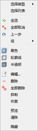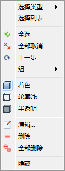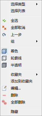 右键菜单包含与当前任务有关的常用控件。通过它们可以方便地调用命令,同时让焦点恰好保持在模型上。