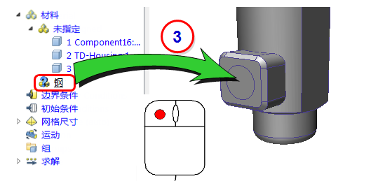 设计分析栏是一种完全交互式的树型结构工具,用于定义和管理 Autodesk Simulation CFD 流程的所有方面。设计分析栏采用了一种层次结构,将 Autodesk Simulation CFD 流程分为三个基础层级:设计分析、设计和工况。