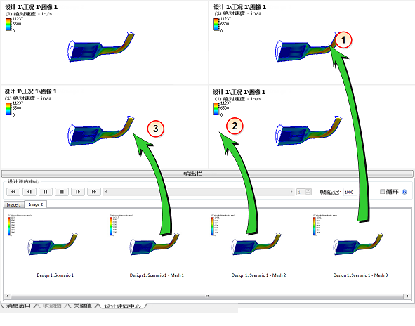 在此步骤中,我们将使用多个视口并排比较速度场,而不是在不同工况间进行动画演示。