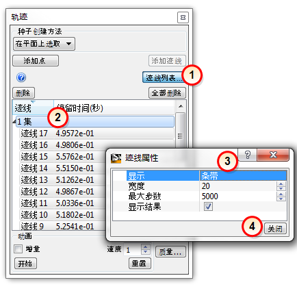 若要删除迹线,请单击“全部删除”。关闭“迹线”对话框。