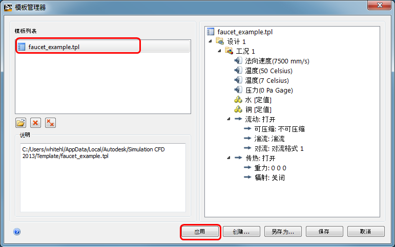 注: 设置可直接拖放到“设计分析”工具条的部件上或模型上。在这一步中,我们将把设置拖放到“设计分析”工具条上的部件名称上。