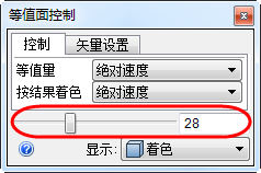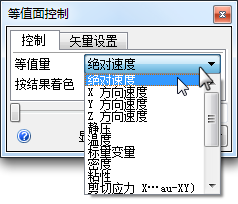 4. 若要以恒定速度值显示等值面,请将“等值量”更改为“绝对速度”。