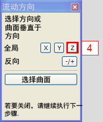 单击“流动方向”对话框中的 Z 按钮。