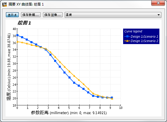 在这一步中,我们比较两个场景中的出口温度梯度。我们将使用在上一步检查第一个场景的温度梯度时创建的摘要曲线。