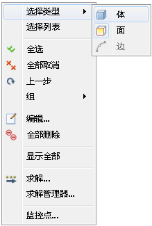 2. 在模型外的区域单击鼠标右键。单击“选择类型”,然后单击“体”。