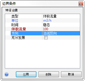 9. 类型 = 体积流量,单位 = m3/h,体积流量 = 100。