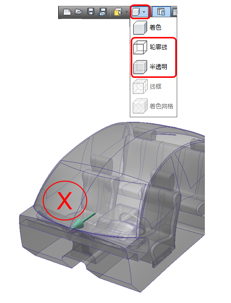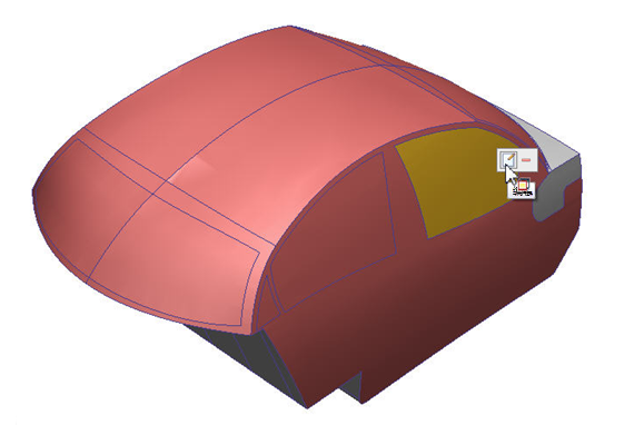 11. 将模型外观恢复为“着色”,并旋转模型。选择座舱后部的两个弧形面。单击上下文工具栏中的“编辑”按钮。