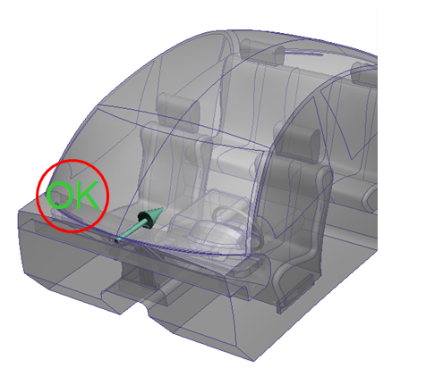 5. 冷空气通过挡风玻璃下方的矩形开口进入座舱。我们将为此面指定温度和流速。选择此面,然后单击上下文工具栏中的“编辑”按钮。