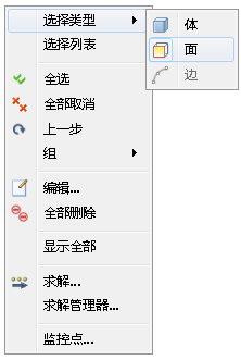 4. 在模型外的区域单击鼠标右键。单击“选择类型”,然后单击“面”。
