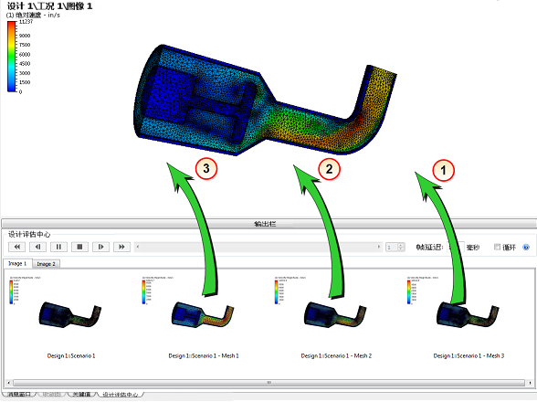 应启用输出栏的“设计评估中心”选项卡。单击“图像 1”以显示网格摘要图像:
