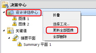 在“决策中心”中,在“设计评估中心”分支上单击鼠标右键,然后单击“更新所有图像”。