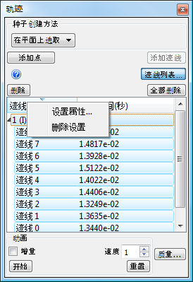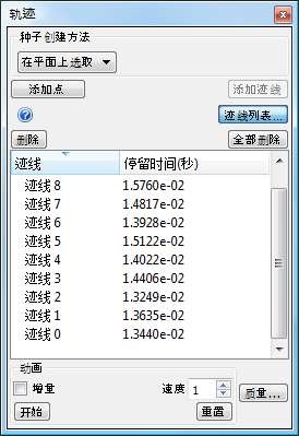 - 从列表中选择迹线并单击删除按钮,以删除单独的粒子迹线。