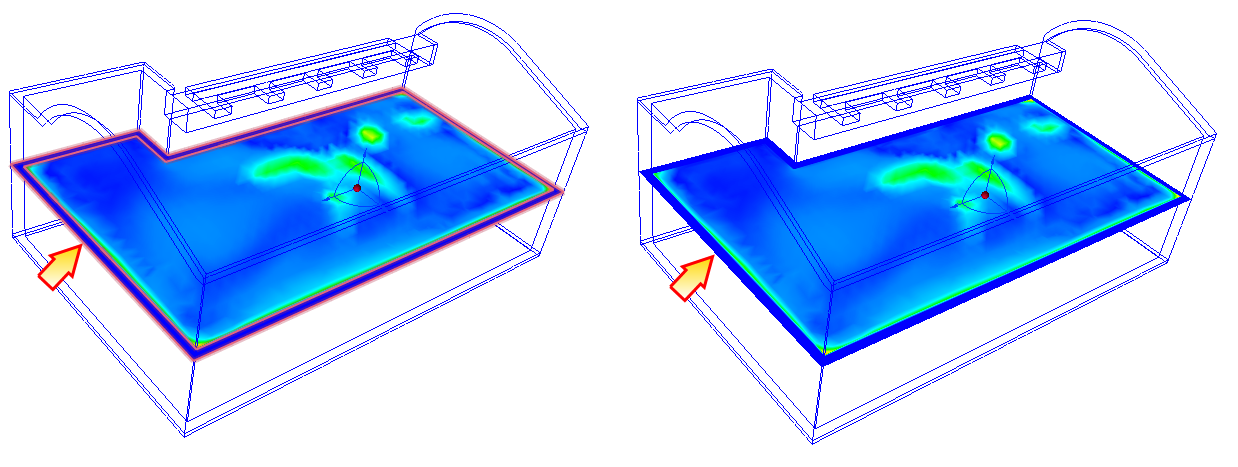 “结果平面”是在三维模型中显示数据的主要工具。这些切面在 Autodesk Simulation CFD 结果可视化中扮演多重角色: