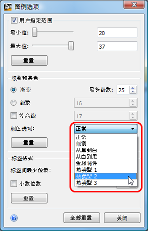 11. 在图例上单击鼠标右键,并选择“选项”。从颜色选项菜单中,选择热类型 2。