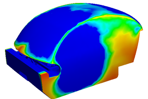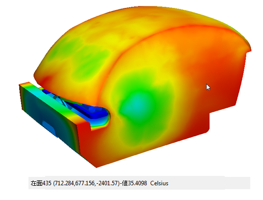 4. 若要探测温度值,请按住 Shift 和 Ctrl 键,同时将光标悬停在模型上。这些值显示在左下角的状态栏上。