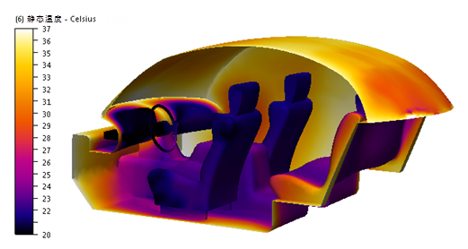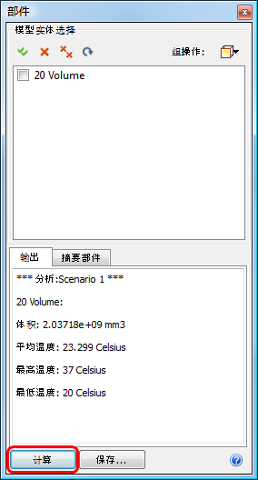 14. 若要计算空气的温度,请选择座舱空气体。在“部件选择”窗口中单击计算按钮,并记下平均、最高和最低温度: